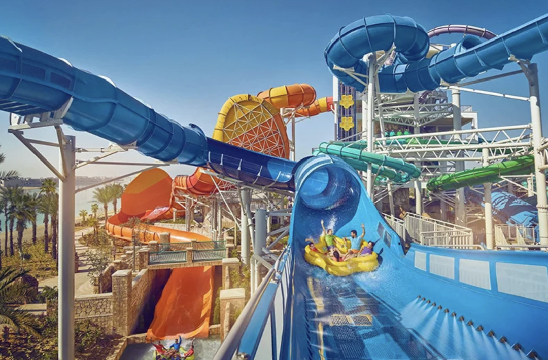 该乐园位于赛义赫港度假区,以希腊岛屿的白色村落为设计灵感,将闲适的地中海风格与亲子欢乐融为一体。乐园内设有湛蓝的水上滑道、嬉水区与惬意的造浪池,背靠风景宜人的海滨区域。作为迪拜大型水上乐园之外的优质选择,该水上乐园及度假村海滩将免费开放至3月31日,全家均可免费入园,还可享受水上运动5折优惠;万豪旅享家会员可享餐饮消费8折福利。